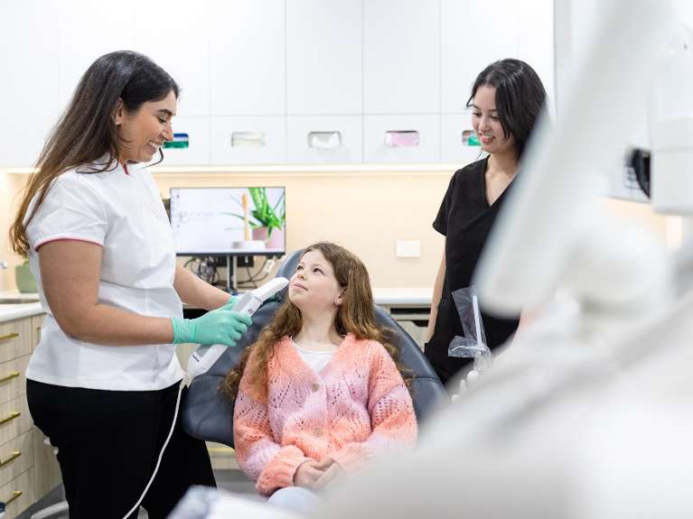 Diagnostic cameras are also an essential tool in digital dentistry. They not only take photos but by using autofluorescence, decay can be detected at its earliest stages, resulting in less invasive treatments. The camera also highlights dental plaque and gingival inflammation painlessly, allowing us to address these issues before they become more severe.